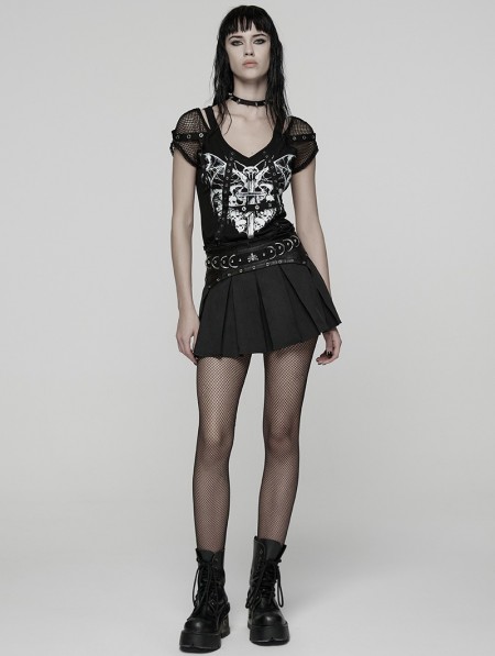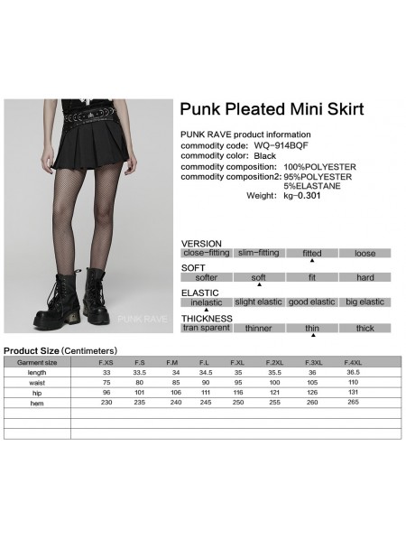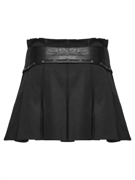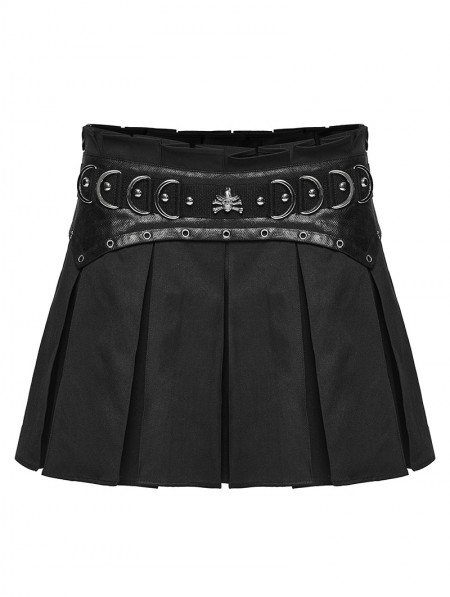 Punk Rave Black Gothic Punk Pleated A-Line Mini Skirt
