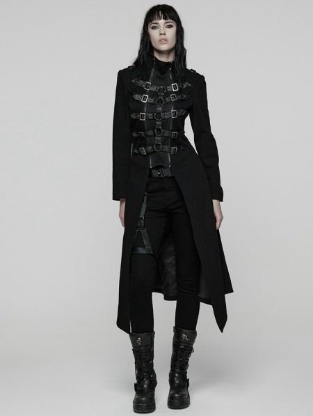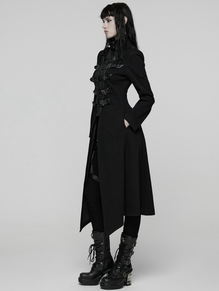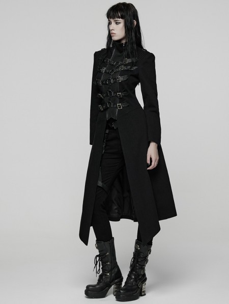 Punk Rave Black Gothic Punk Double-Zipper Skeleton Coat for Women