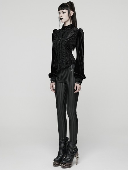 Punk Rave Black Gothic Striped Leggings for Women
