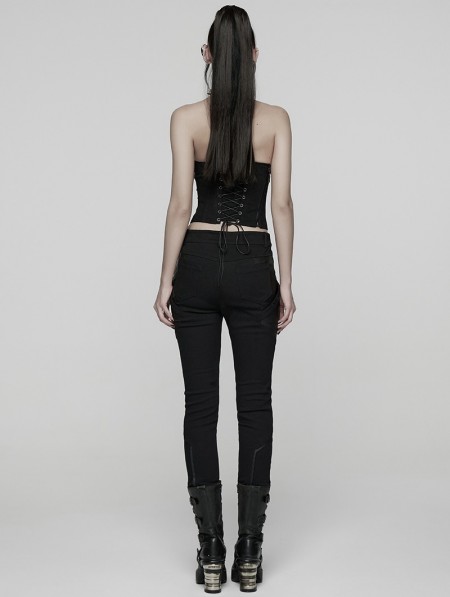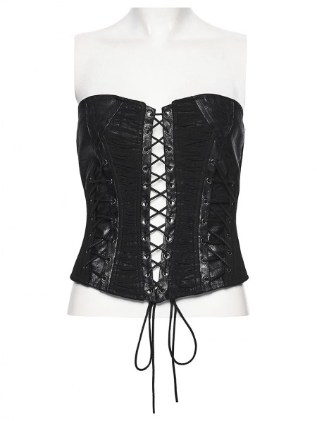 Punk Rave Black Gothic Punk Pleated Lace-Up Tube Top for Women