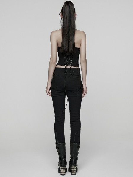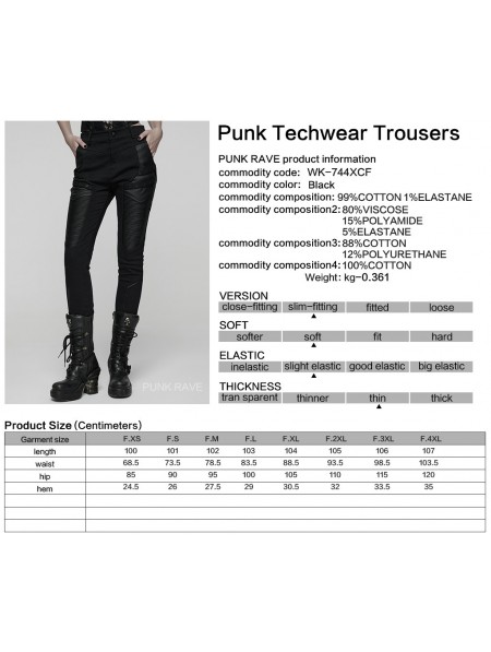 Punk Rave Black Gothic Punk Techwear Trousers for Women