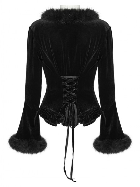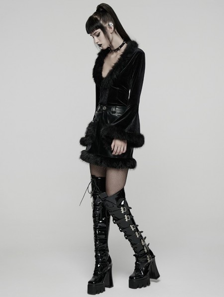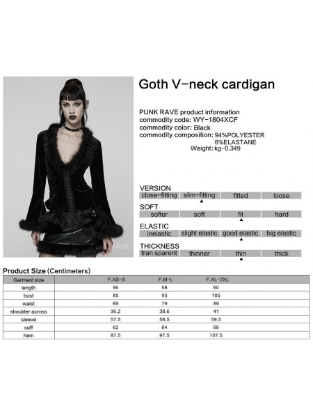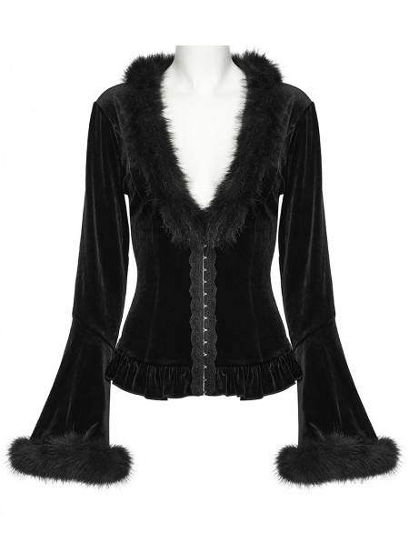 Punk Rave Black Gothic Furry V-Neck Velvet Cardigan for Women