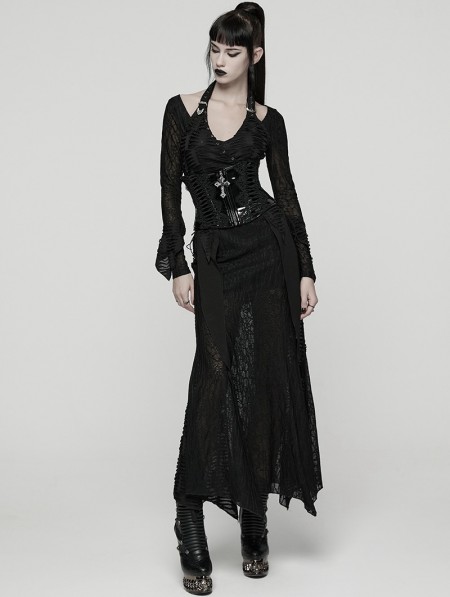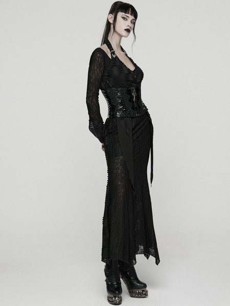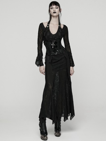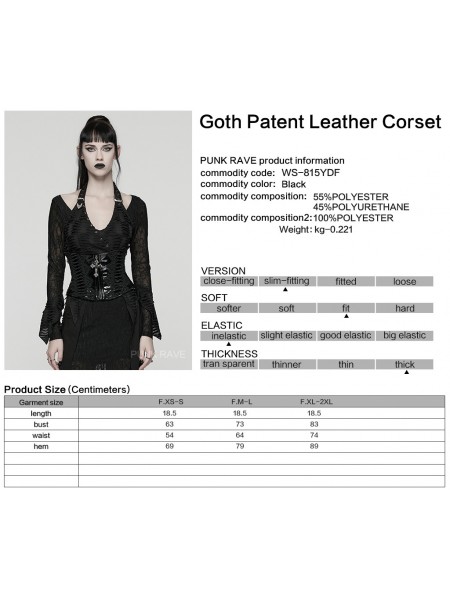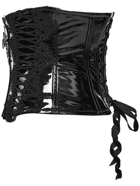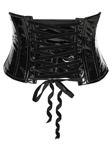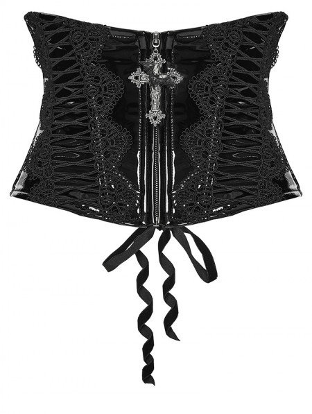 Punk Rave Black Gothic Cross Bat Patent Leather Corset Waistband