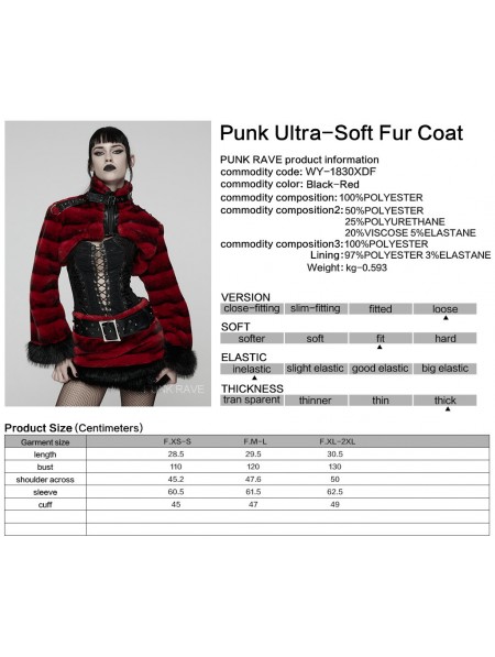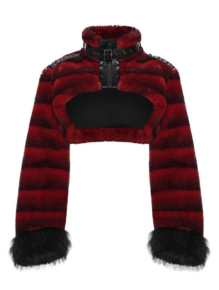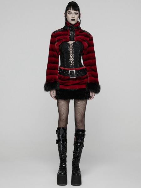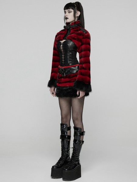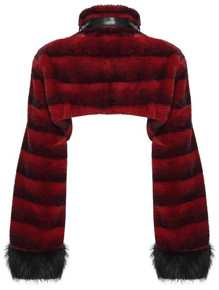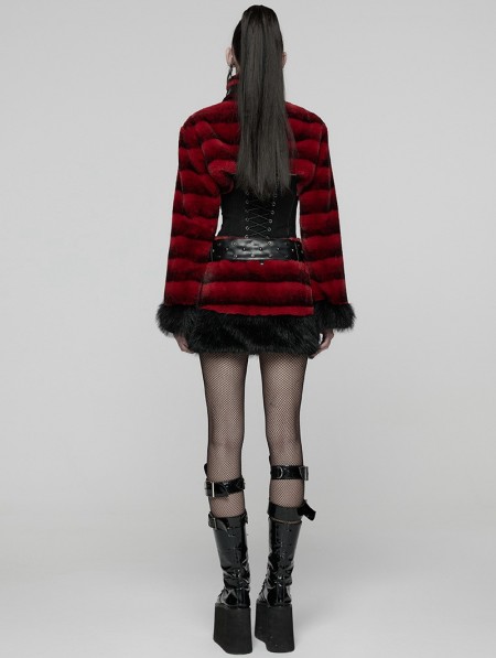 Punk Rave Black and Red Gothic Punk Striped Fluffy Fur Coat for Women