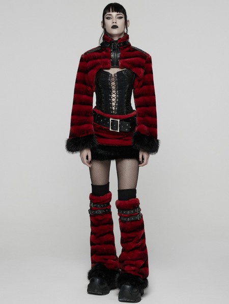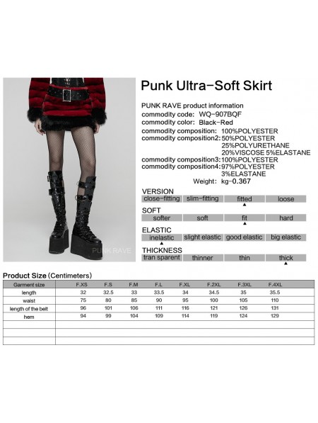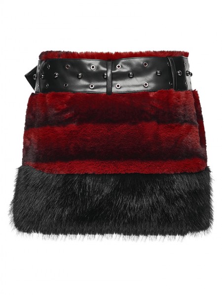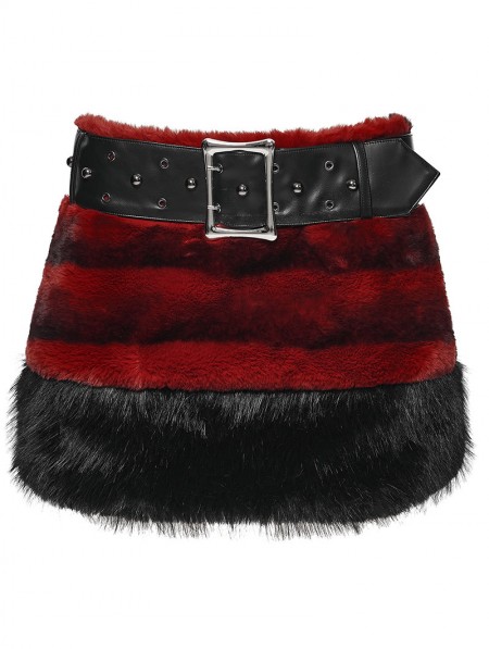 Punk Rave Black and Red Gothic Punk Striped Fluffy Fur Mini Skirt