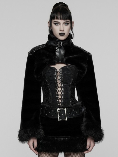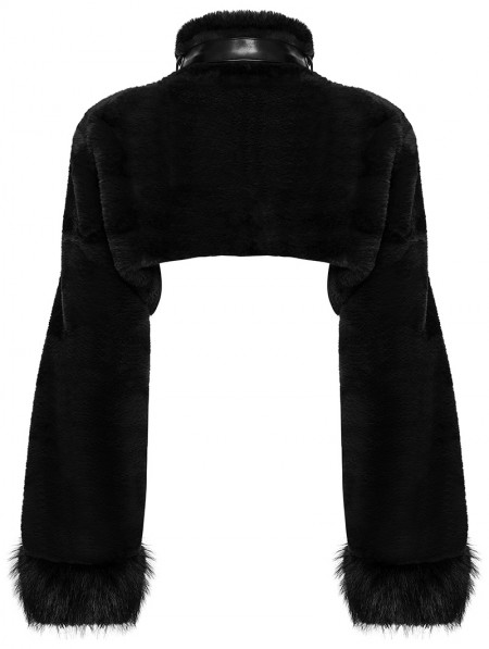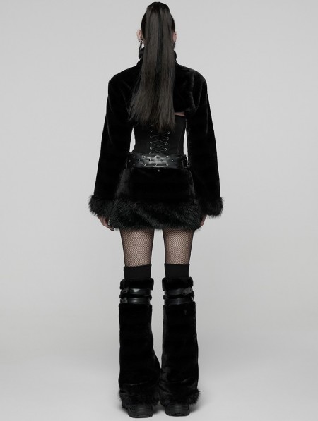 Punk Rave Black Gothic Punk Striped Fluffy Fur Coat for Women