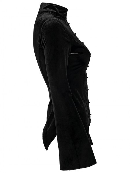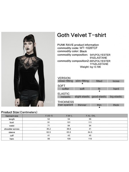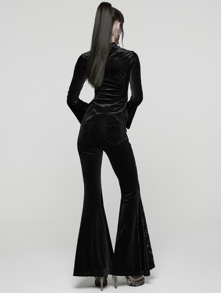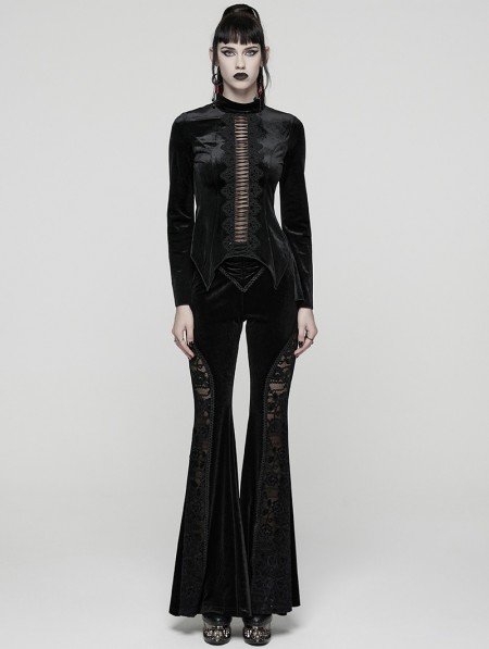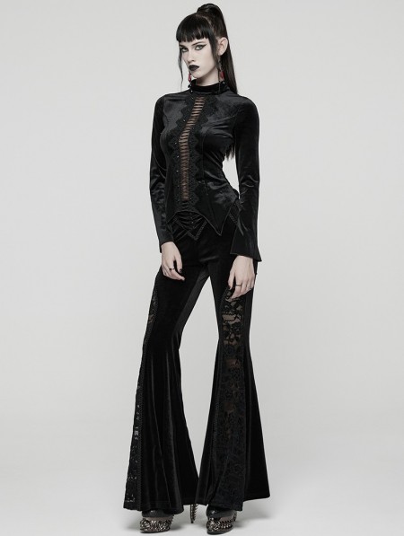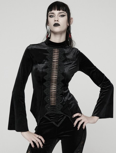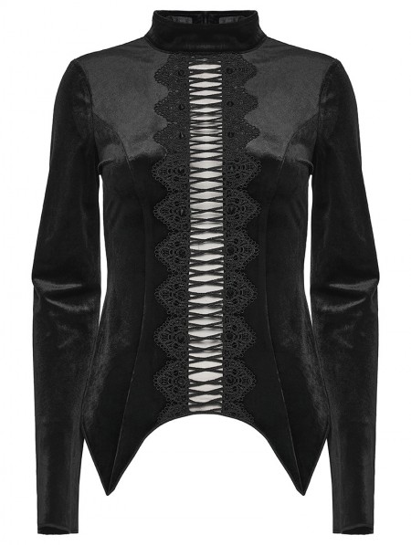 Punk Rave Black Sexy Gothic Hollow Lace Velvet Shirt for Women