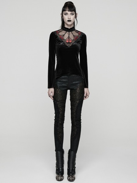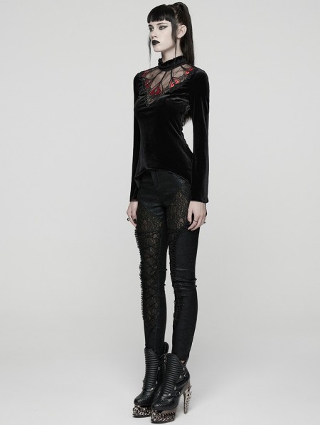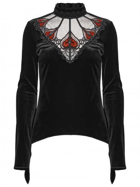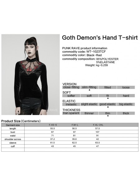 Punk Rave Black and Red Gothic Demon's Hand Velvet Shirt for Women