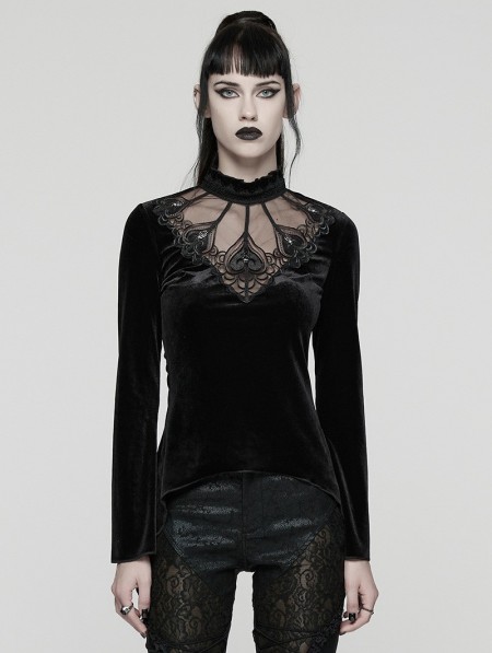 Punk Rave Black Gothic Demon's Hand Velvet Shirt for Women