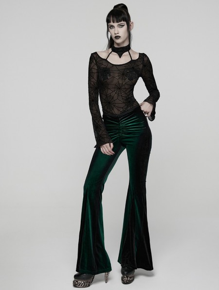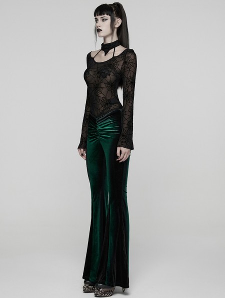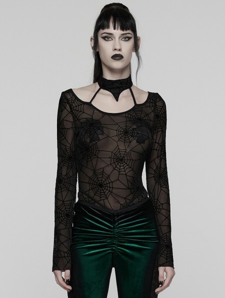 Punk Rave Black Sexy Gothic Spider Web Printed Mesh T-Shirt for Women