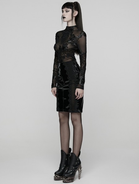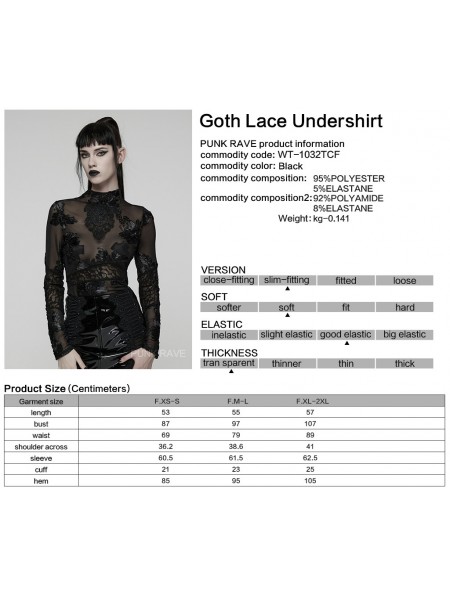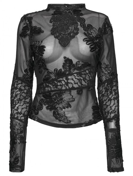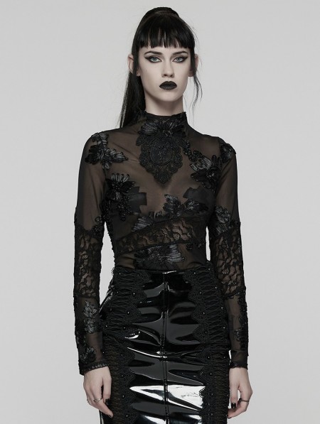 Punk Rave Black Sexy Gothic 3D Floral Mesh Lace Undershirt for Women