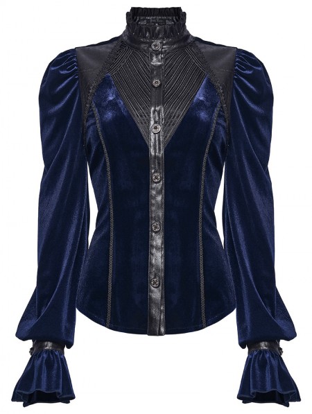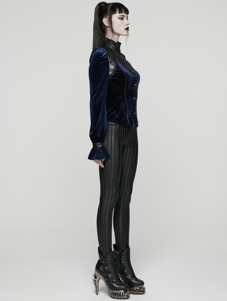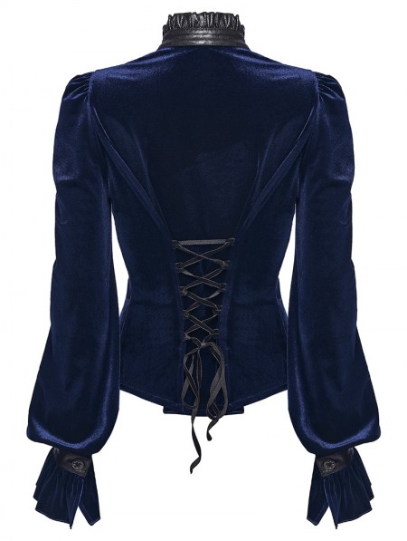 Punk Rave Black and Blue Retro Gothic Velvet Shirt for Women