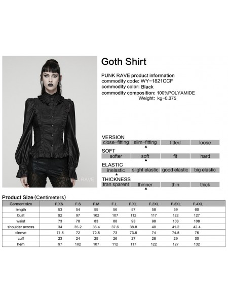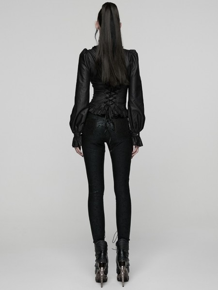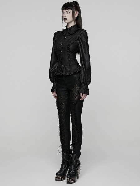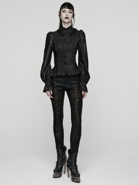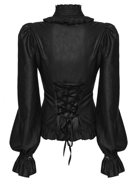 Punk Rave Black Retro Gothic Puff Sleeve Ruffled Shirt for Women