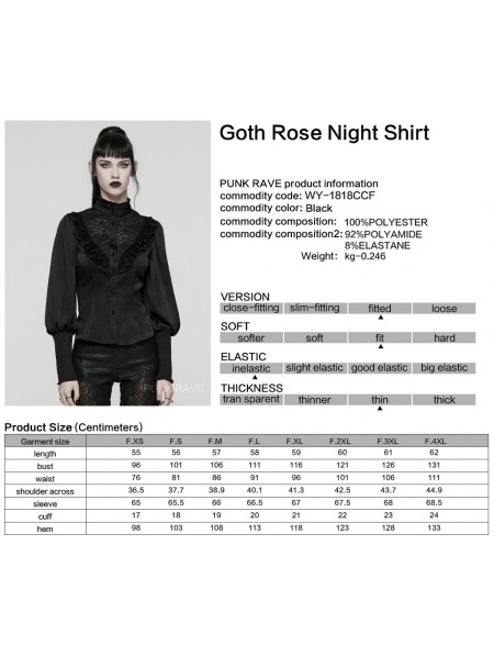 Punk Rave Black Retro Gothic Rose Night Shirt for Women