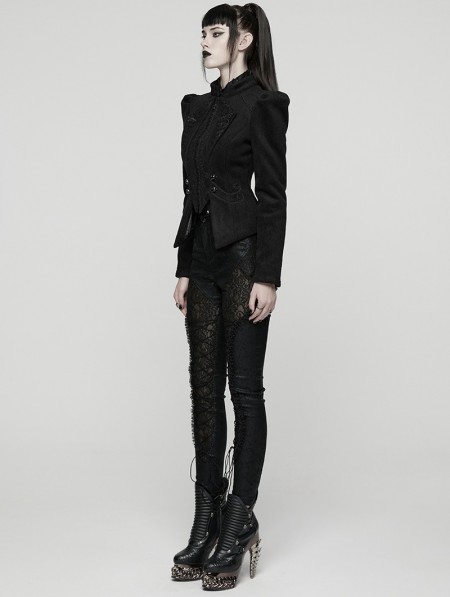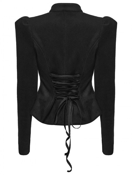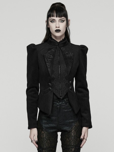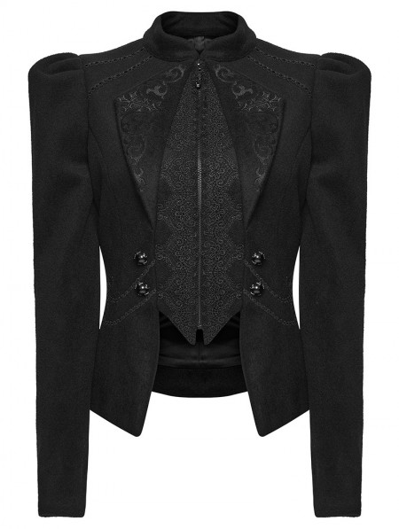 Punk Rave Black Retro Gothic Embroidered Short Woolen Coat for Women
