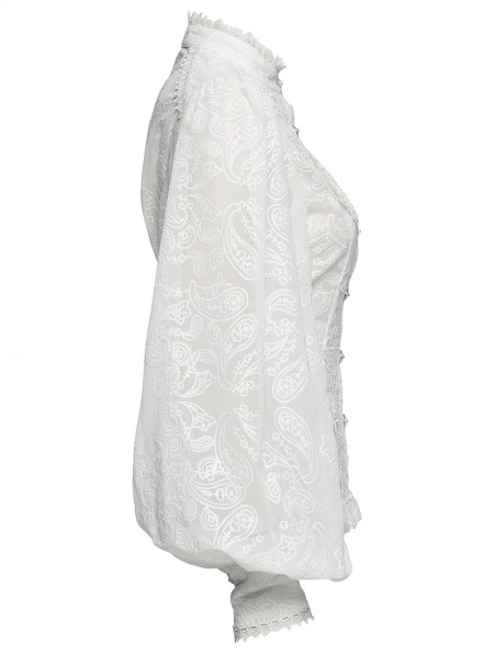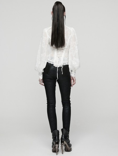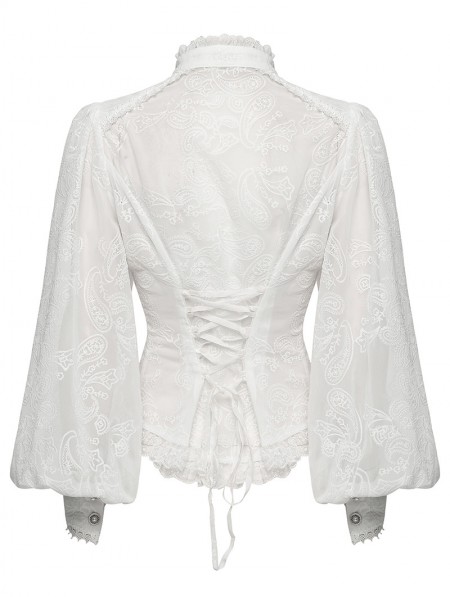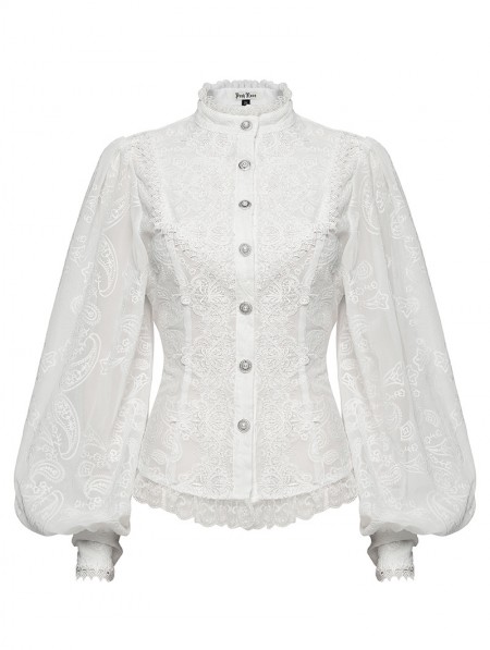 Punk Rave White Retro Gothic Lace Embroidered Chiffon Shirt for Women