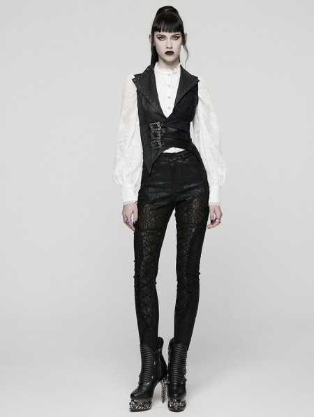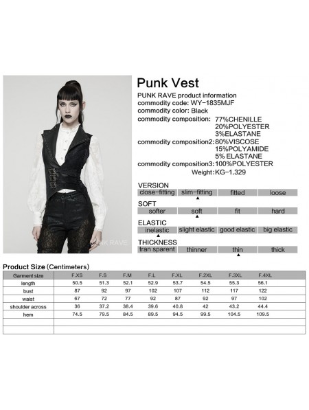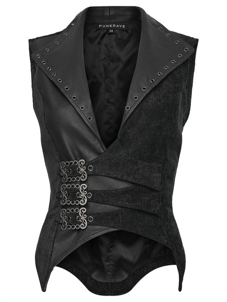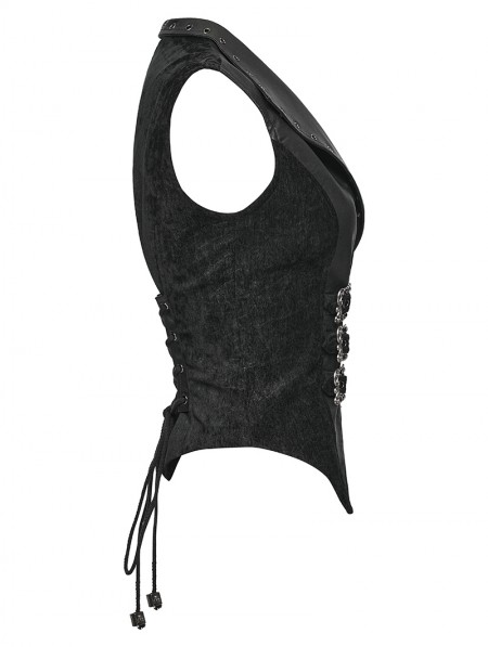 Punk Rave Black Gothic Punk Asymmetric Buckle Vest for Women