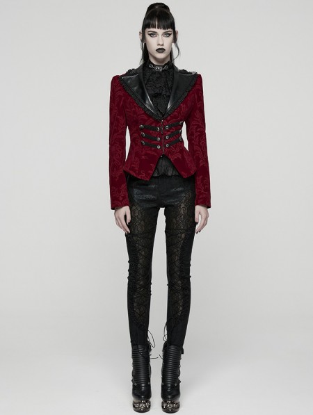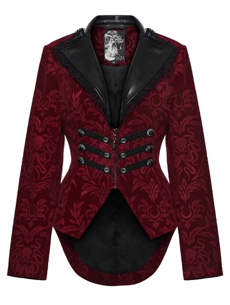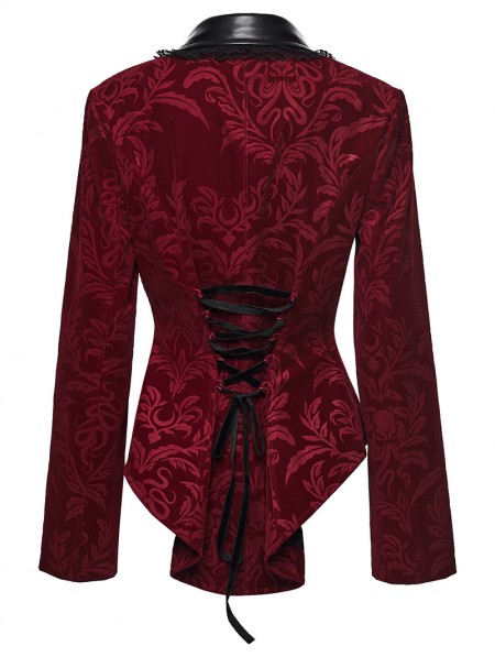 Punk Rave Red and Black Gothic Vintage Print Velvet Coat for Women