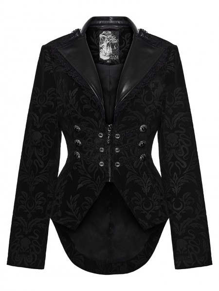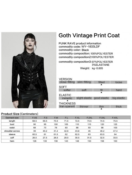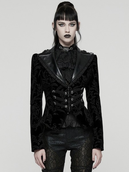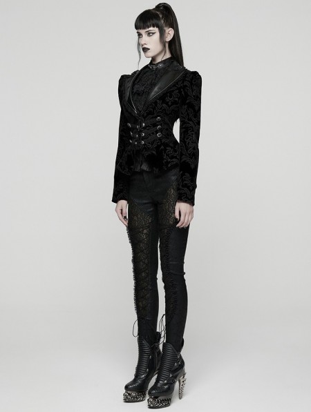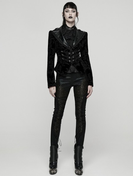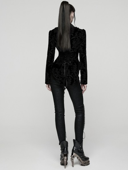 Punk Rave Black Gothic Vintage Print Velvet Coat for Women