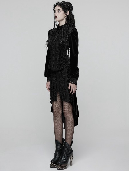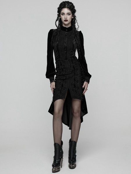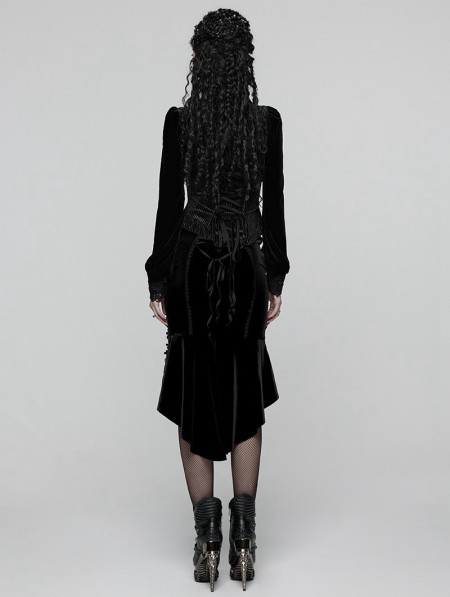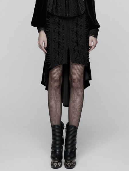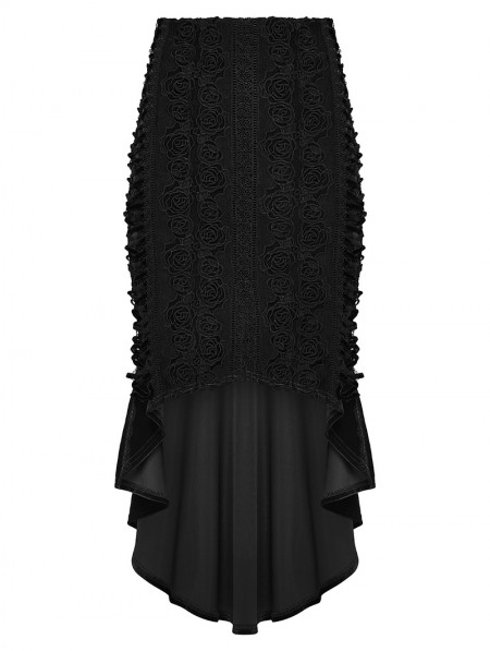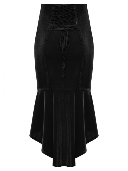 Punk Rave Black Gothic Retro Rose Lace Velvet Fishtail Skirt
