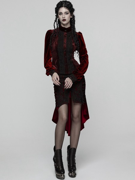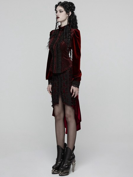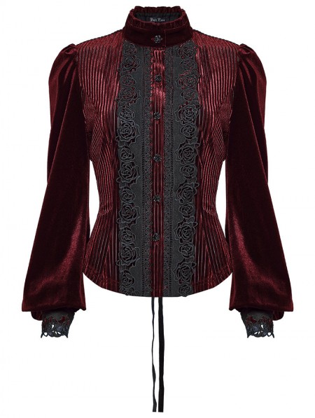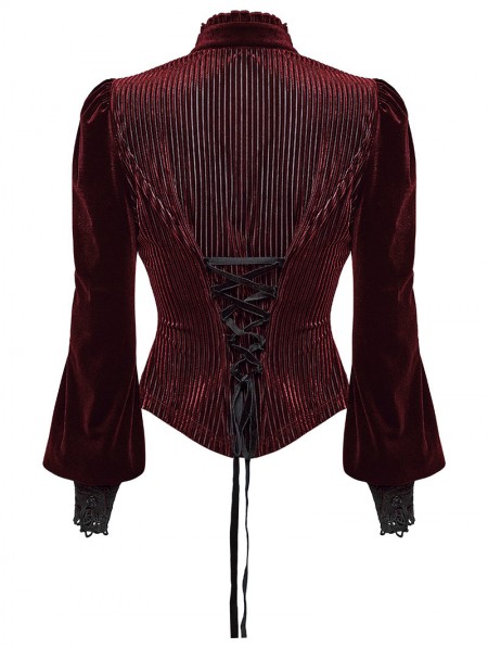 Punk Rave Red Daily Gothic Striped Velvet Shirt for Women