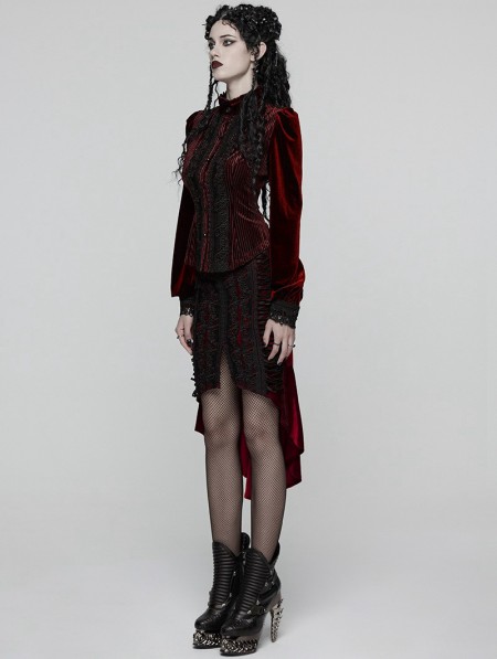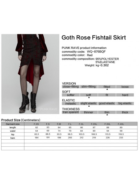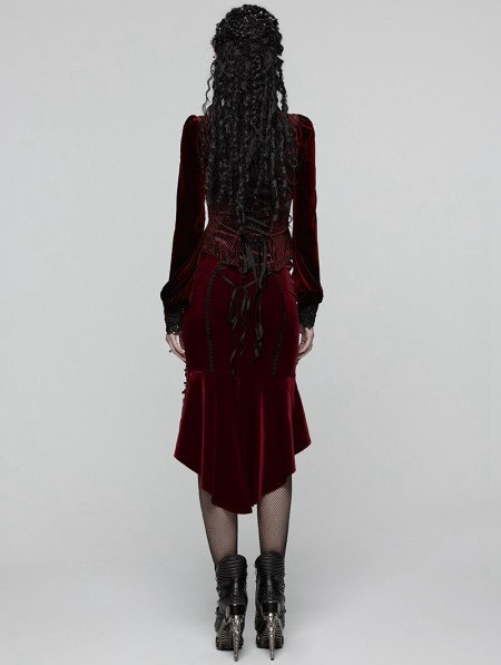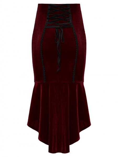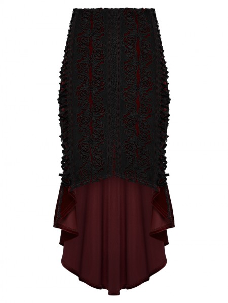 Punk Rave Black and Red Gothic Retro Rose Lace Velvet Fishtail Skirt