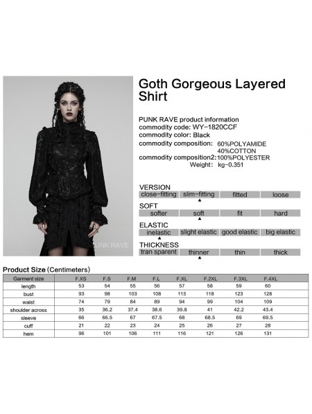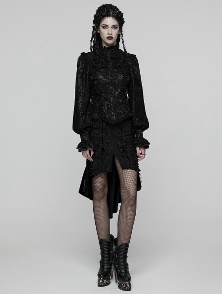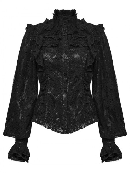 Punk Rave Black Gothic Gorgeous Layered Ruffle Lace Shirt for Women