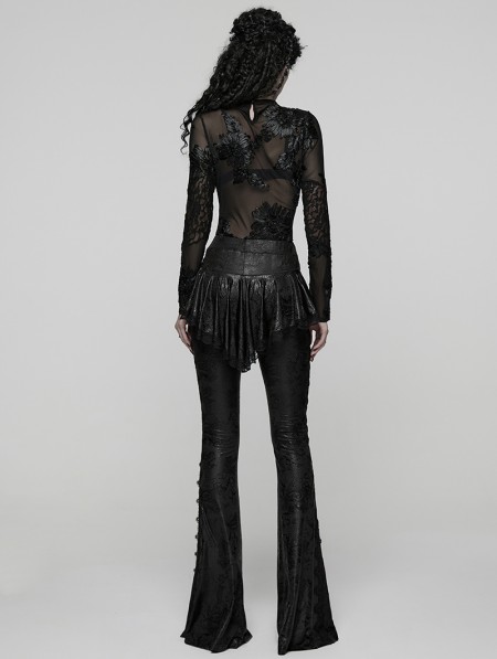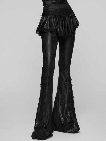Punk Rave Black Gothic Lace Trim Flared Skirt Pants for Women