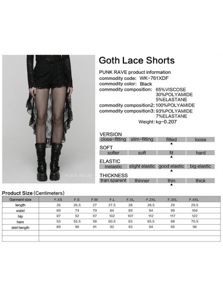 Punk Rave Black Gothic Retro Floral Lace Shorts for Women