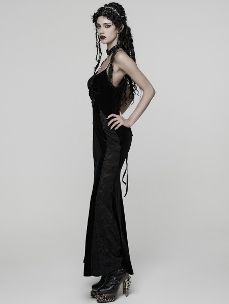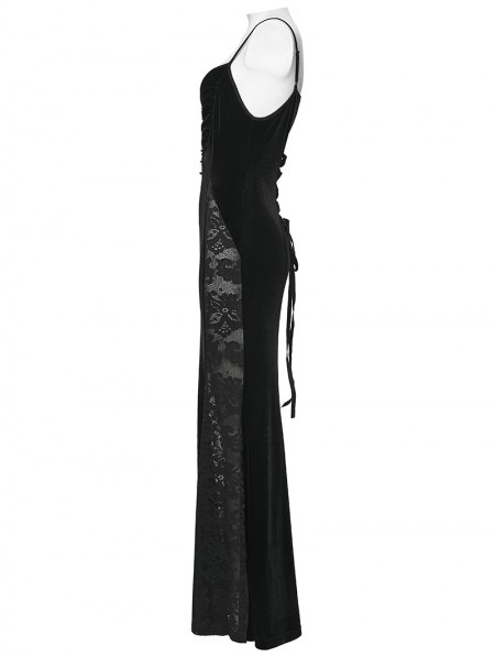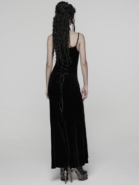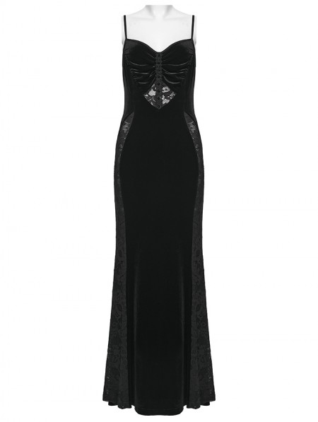 Punk Rave Black Gothic Dark Heart Ruched Velvet Long Slip Dress