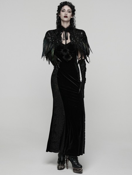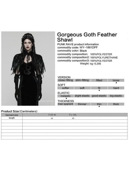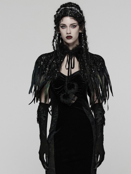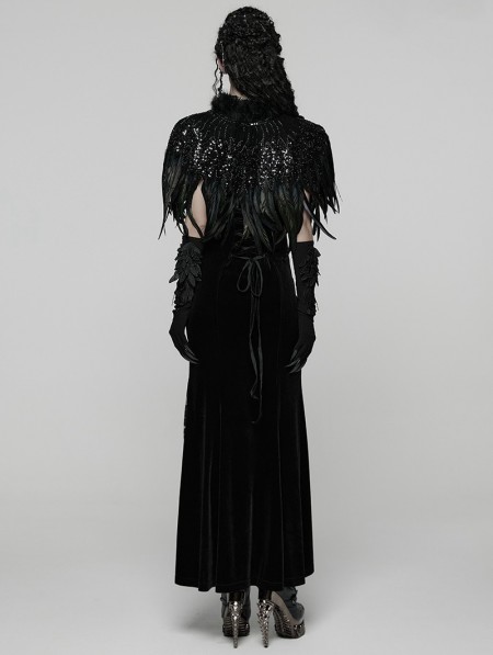 Punk Rave Black Gorgeous Gothic Sequined Feather Shawl