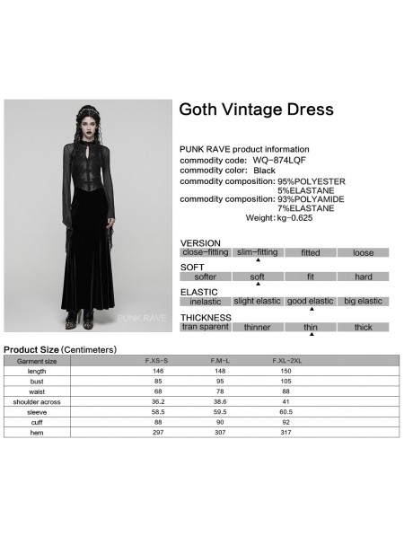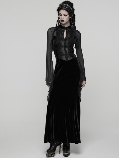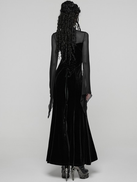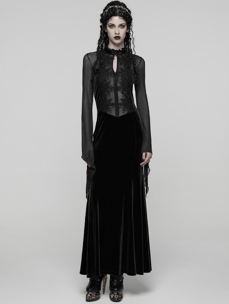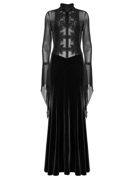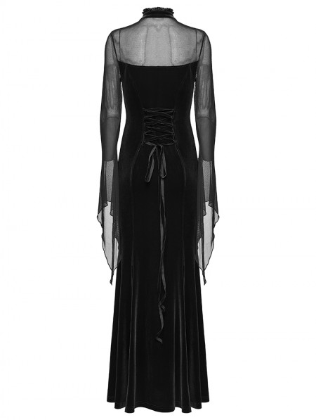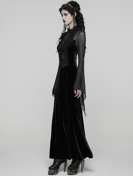 Punk Rave Black Sexy Gothic Vintage Mesh Spliced Velvet Maxi Dress