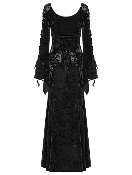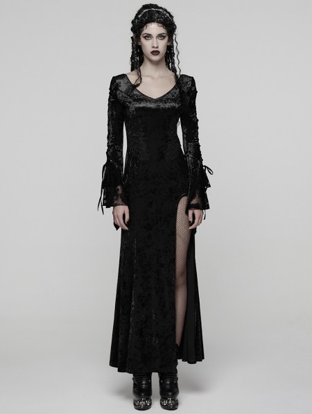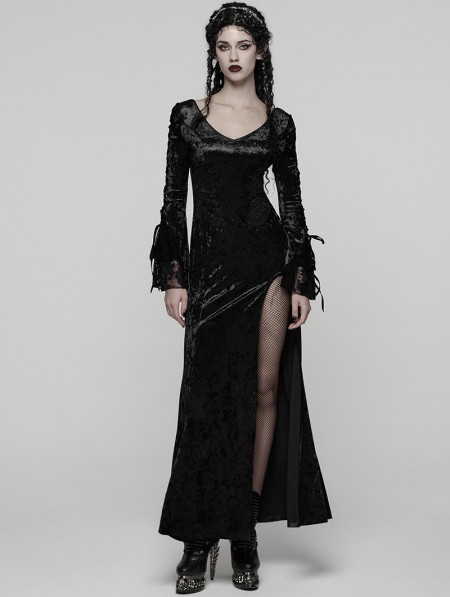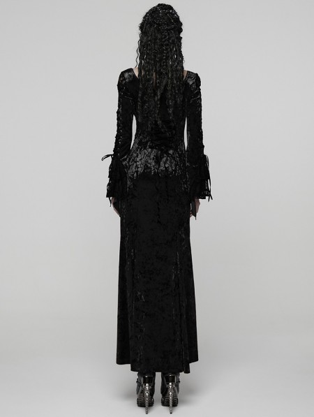 Punk Rave Black Gorgeous Gothic Velvet High Slit Fishtail Dress