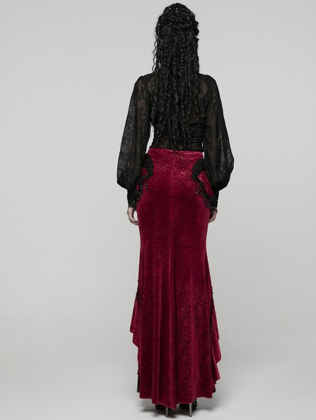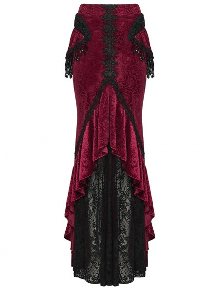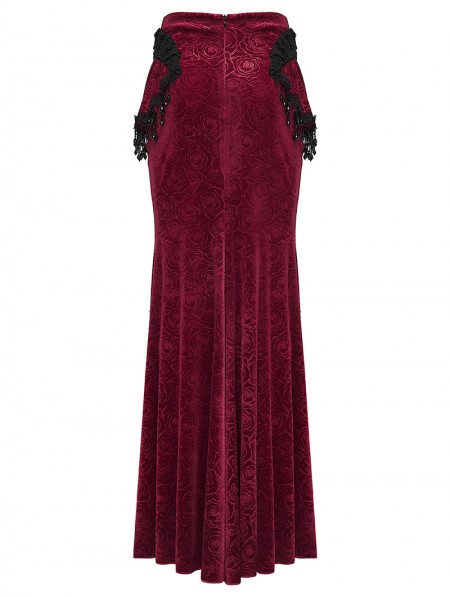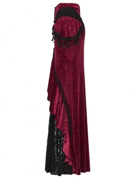 Punk Rave Red and Black Gothic Gorgeous Velvet Beaded Tassel Fishtail Maxi Skirt