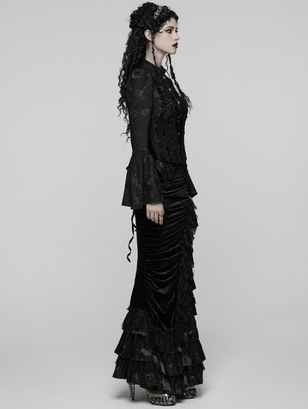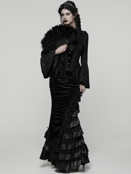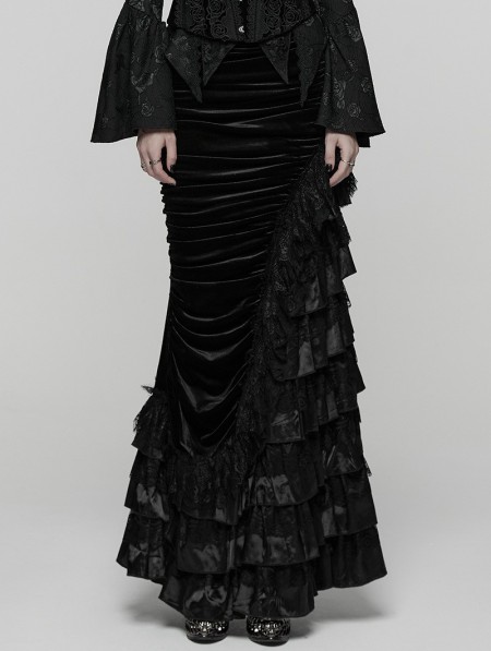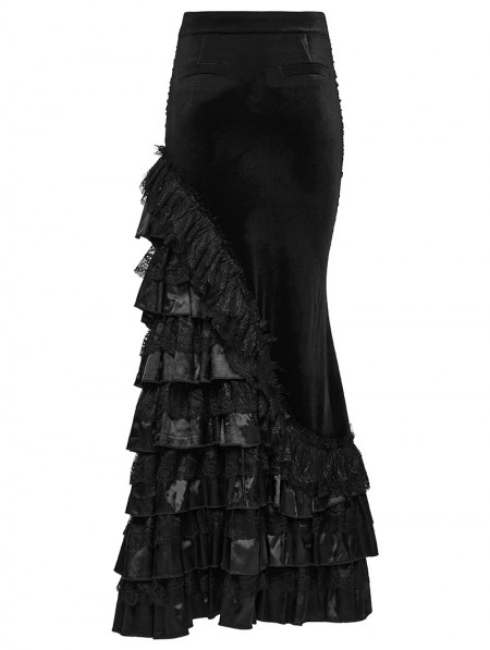 Punk Rave Black Gothic Victorian Gorgeous Velvet Tiered Maxi Skirt