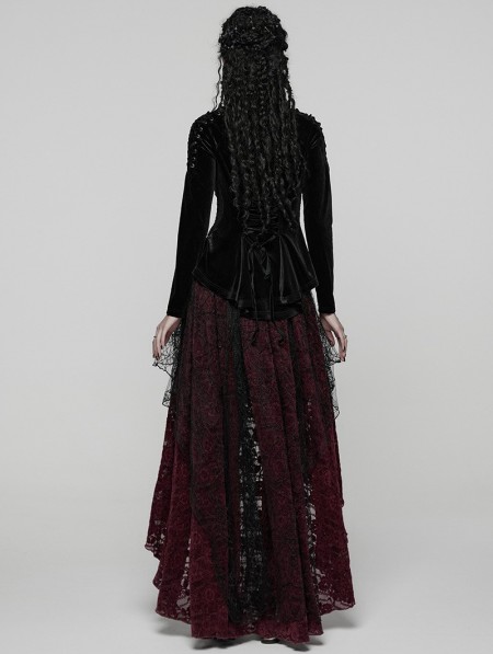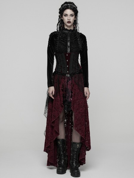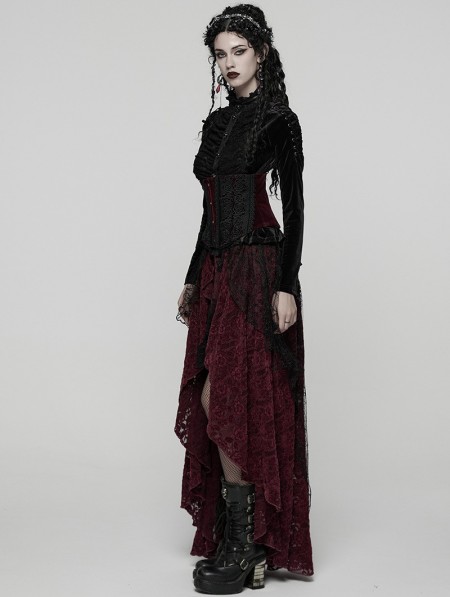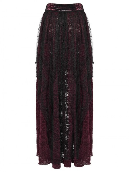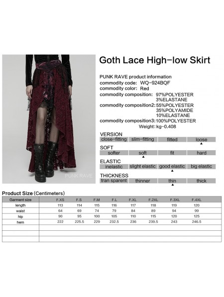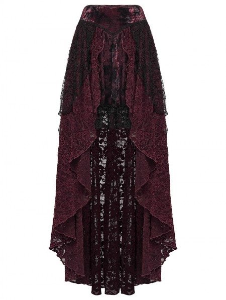 Punk Rave Red and Black Gothic Spider Web Mesh Lace High-Low Skirt