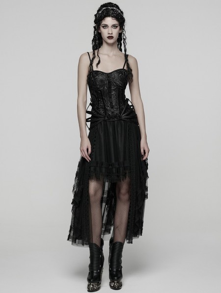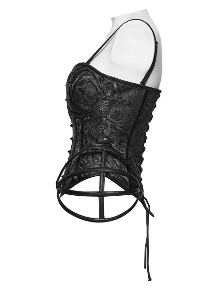 Punk Rave Black Gothic Rose Jacquard Corset Top for Women