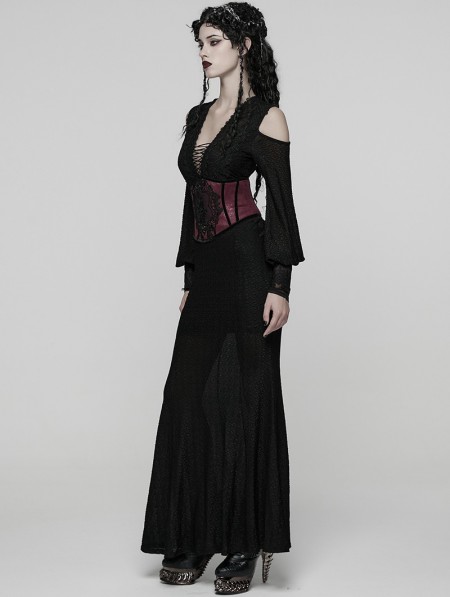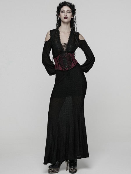Punk Rave Red and Black Gothic Gorgeous Embossed Leather Waistband