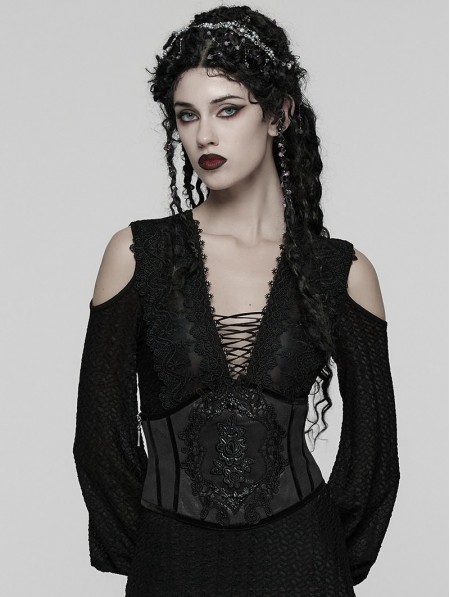 Punk Rave Black Gothic Gorgeous Embossed Leather Waistband