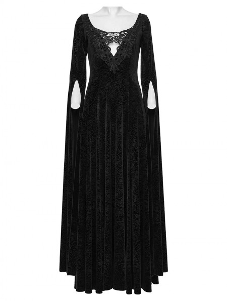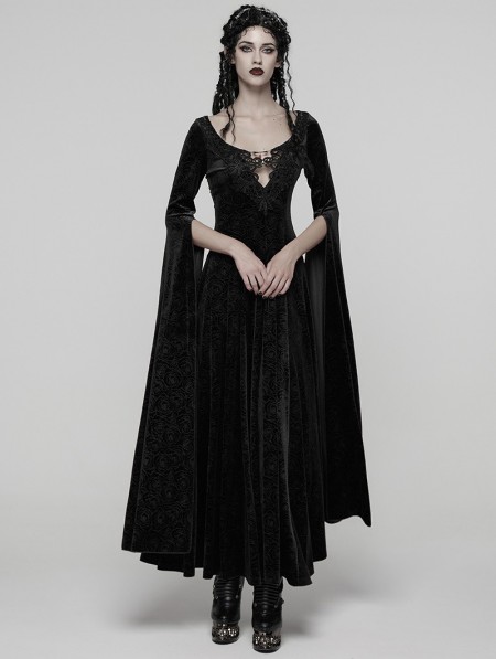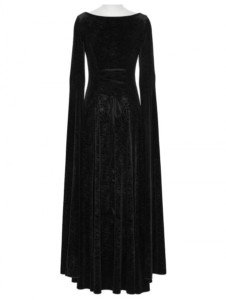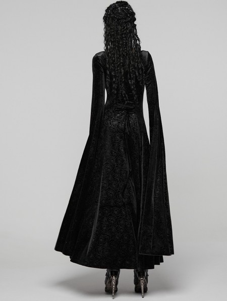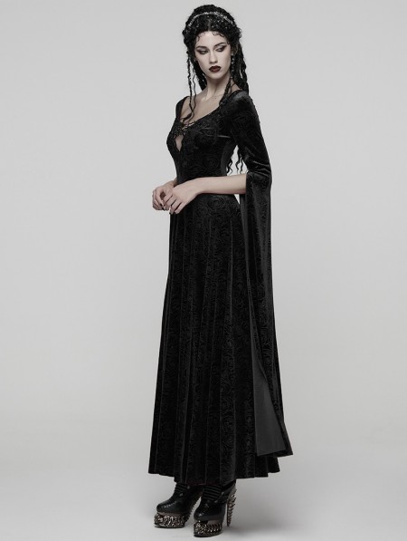 Punk Rave Black Sexy Gothic Historical Inspired Rose Velvet Long Dress