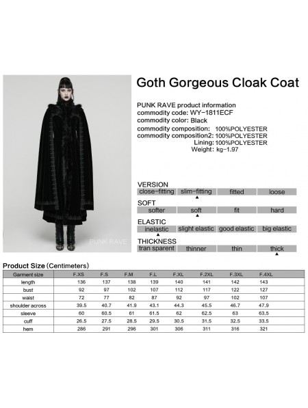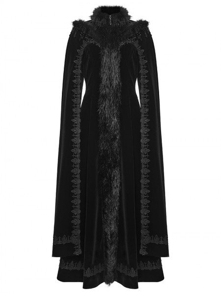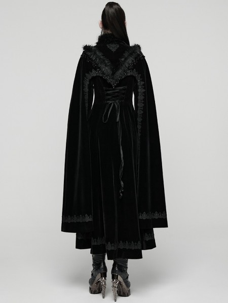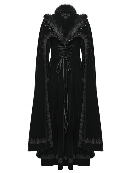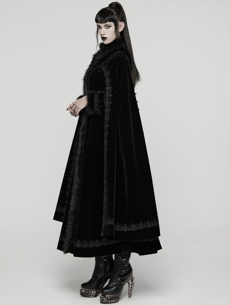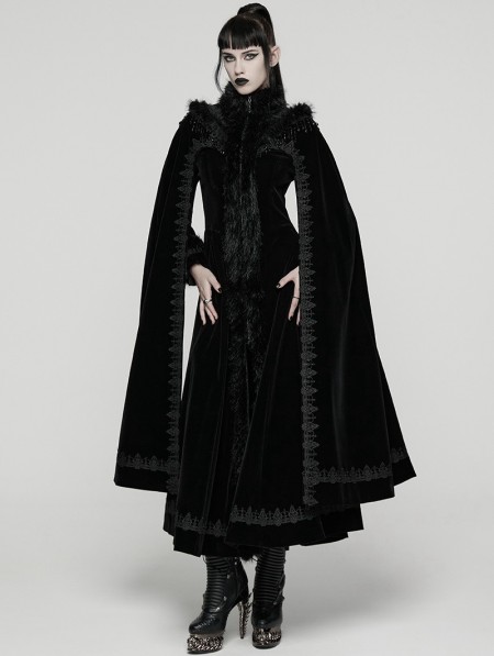 Punk Rave Black Retro Gothic Plush Velvet Long Cloak Coat for Women
