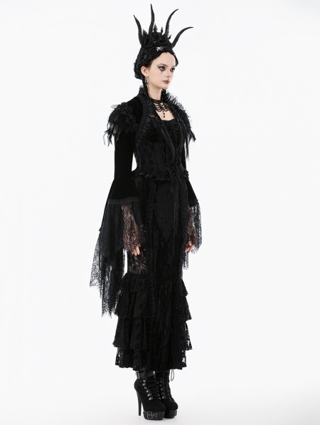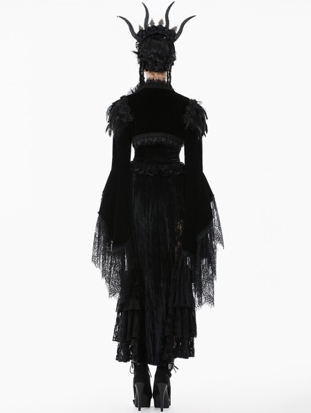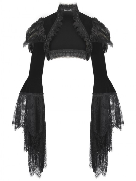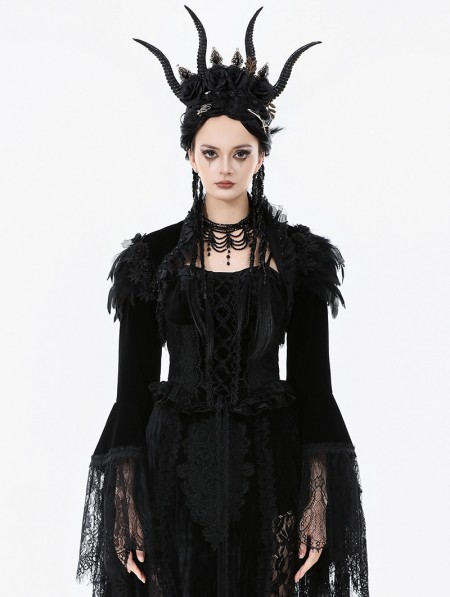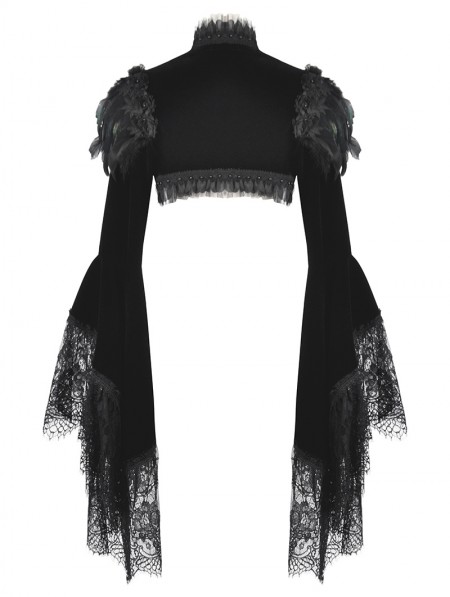Dark in love Black Noble Gothic Velvet Raven Feather Cape for Women