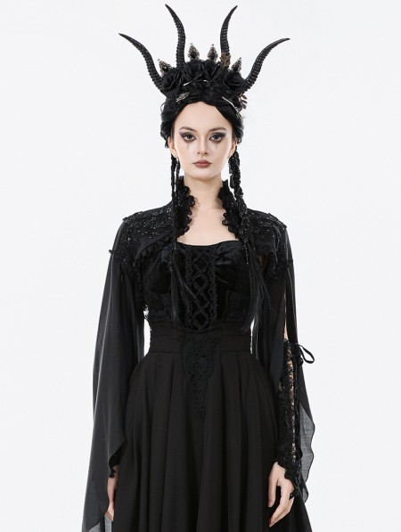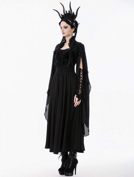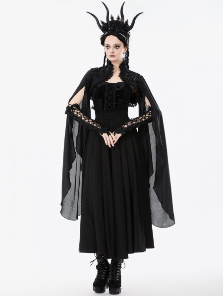Dark in love Black Gothic Embroidered Lace Applique Cape for Women