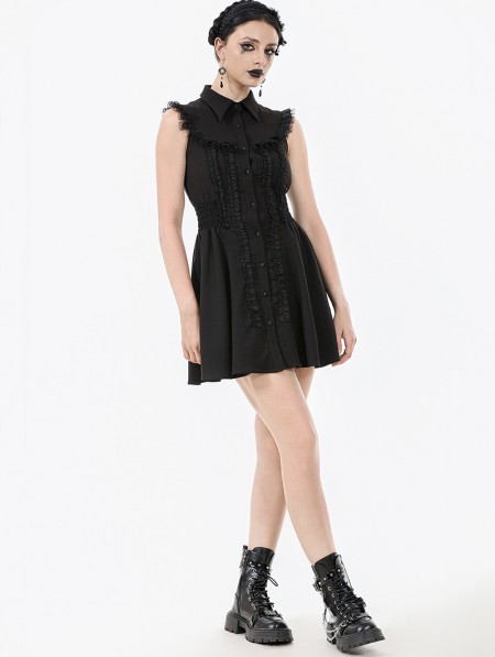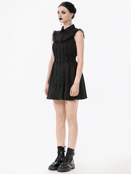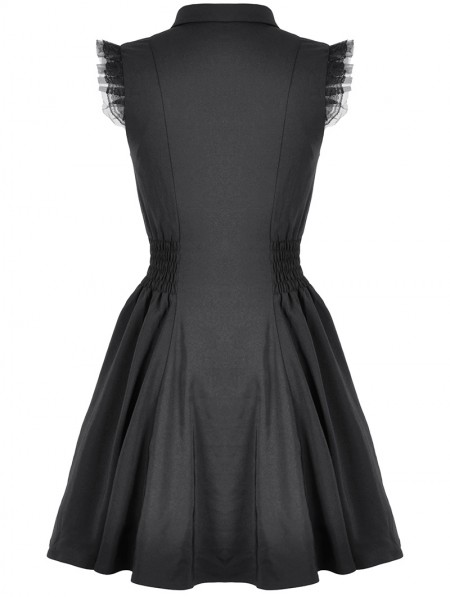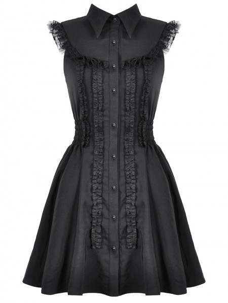 Dark in love Black Gothic Dolly Sleeveless Button-Front Mini Dress