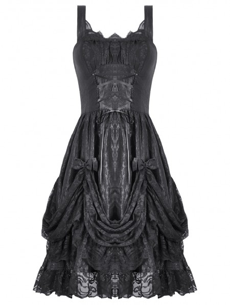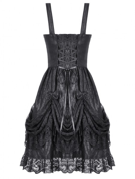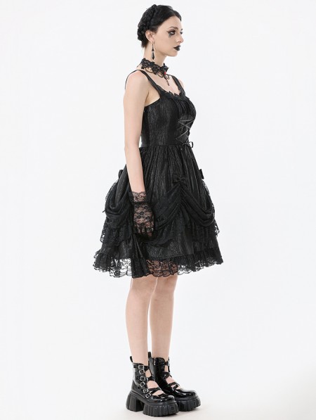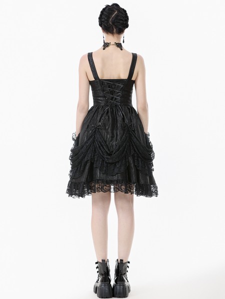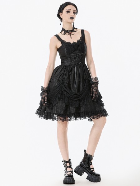Dark in love Black Gothic Lolita Priness Lace Strap Short Dress