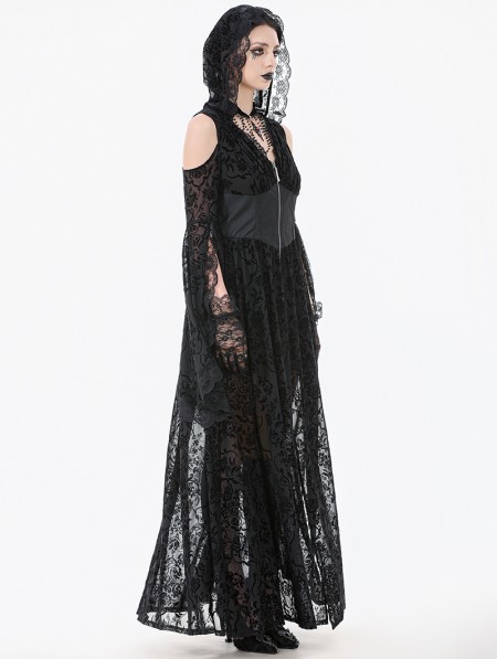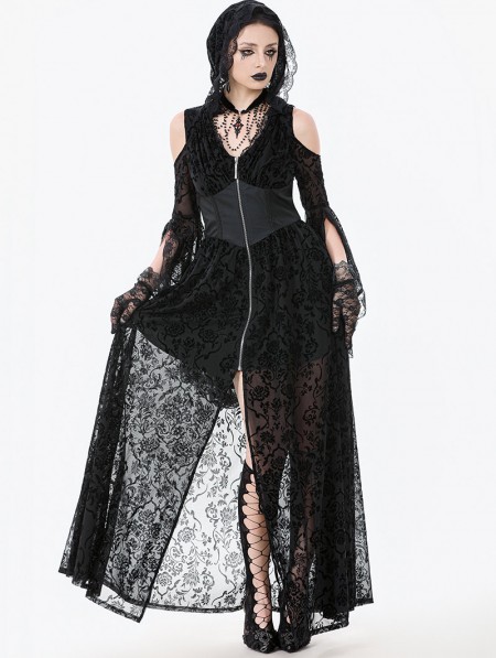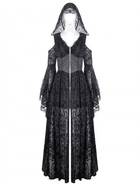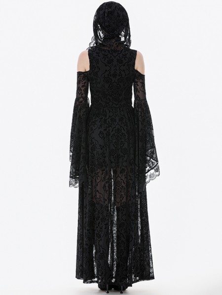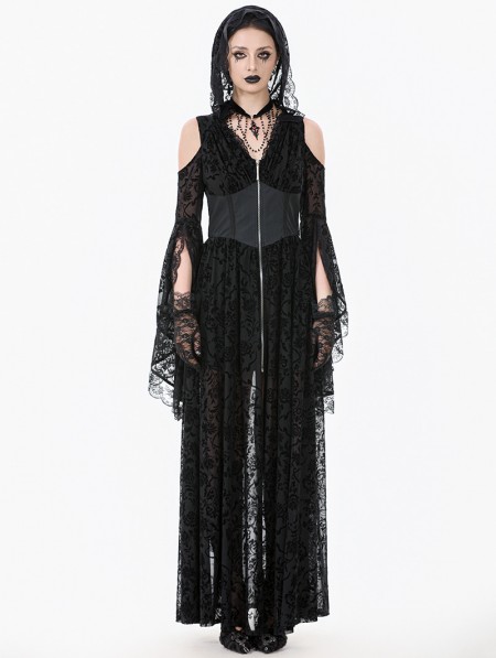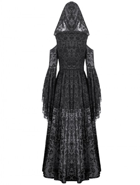 Dark in love Black Gothic Hooded Cold Shoulder Long Gown