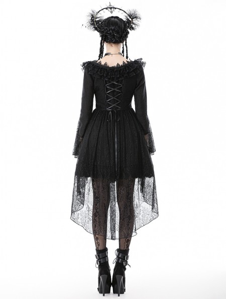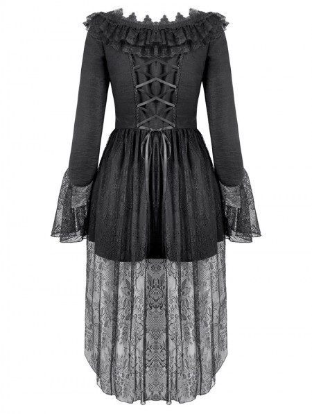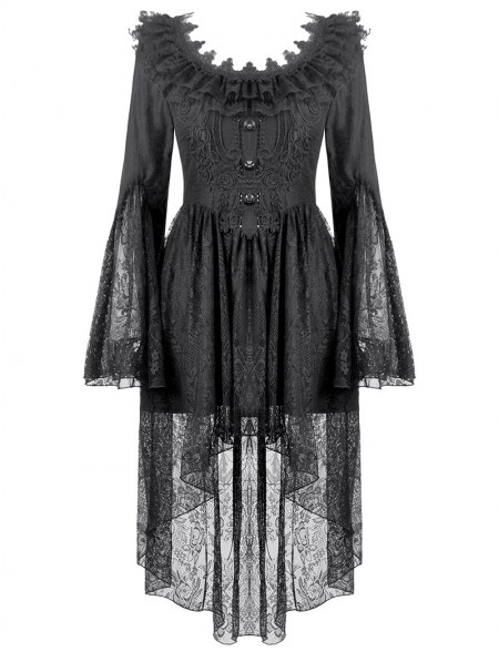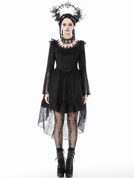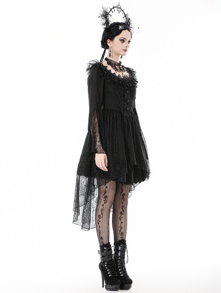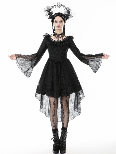 Dark in love Black Gothic Ruffle Lace Bell Sleeve High-Low Dress