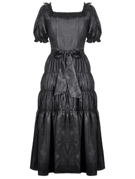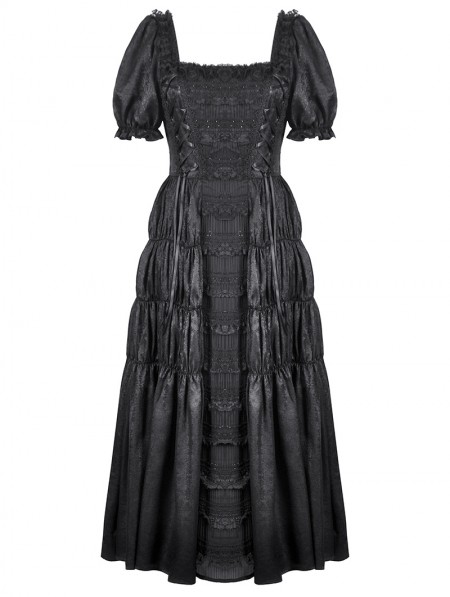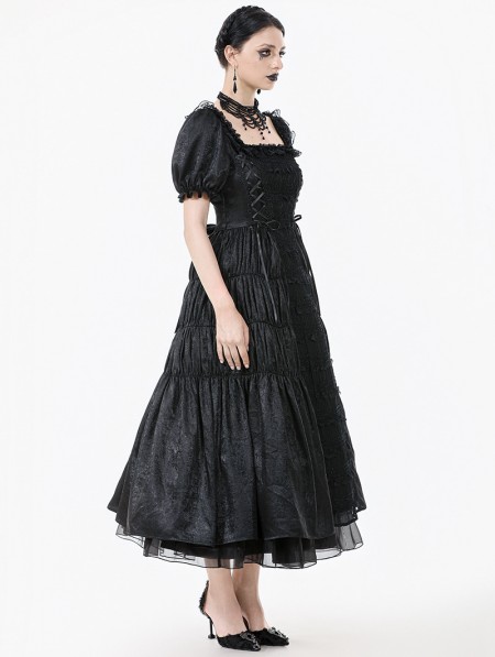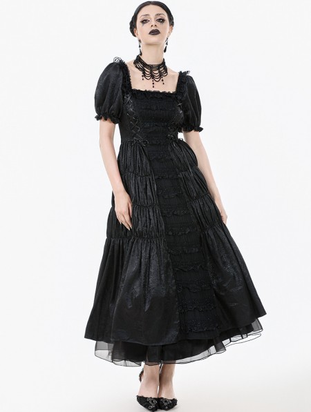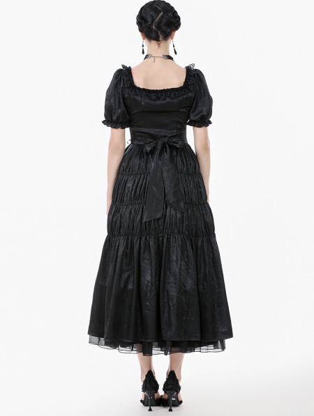 Dark in love Black Retro Gothic Frill Puff Sleeve Long Dress