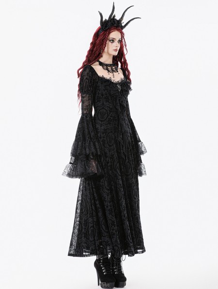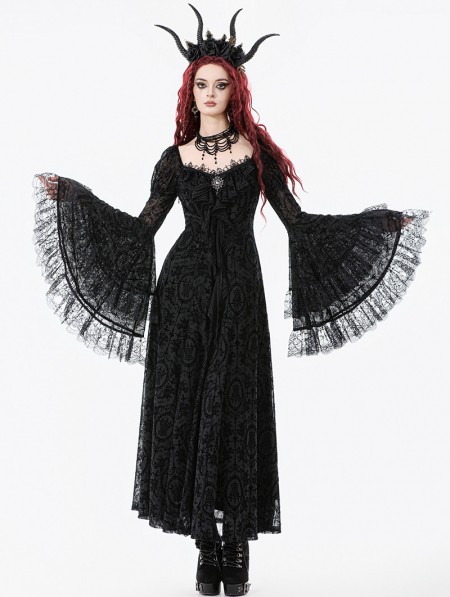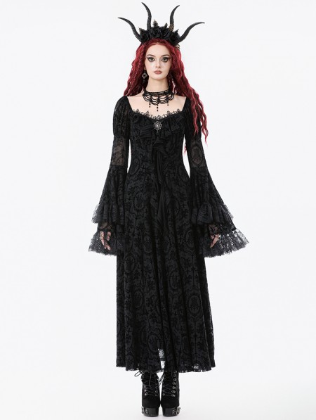 Dark in love Black Gothic Royal Jewel Embellished Vintage Maxi Dress
