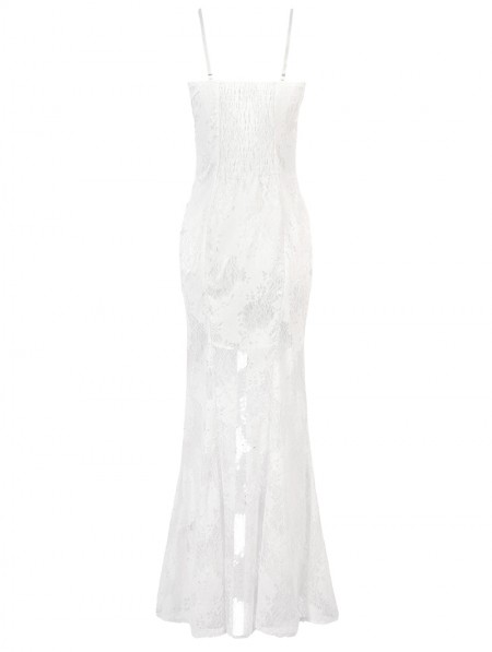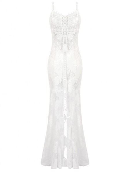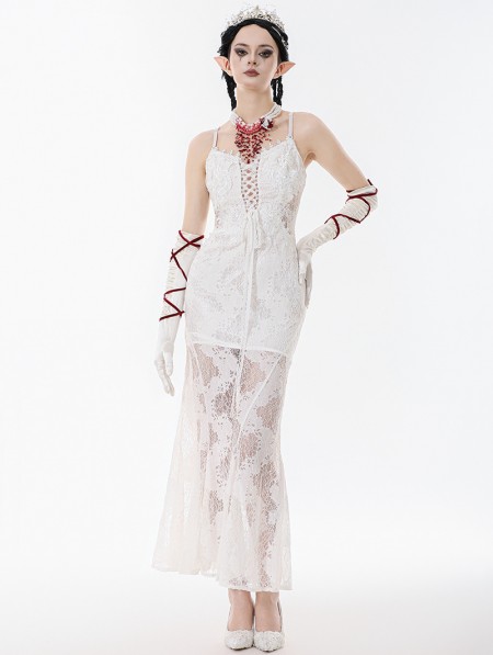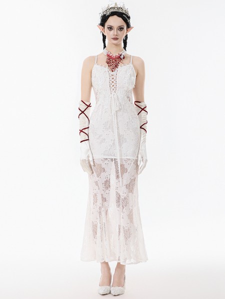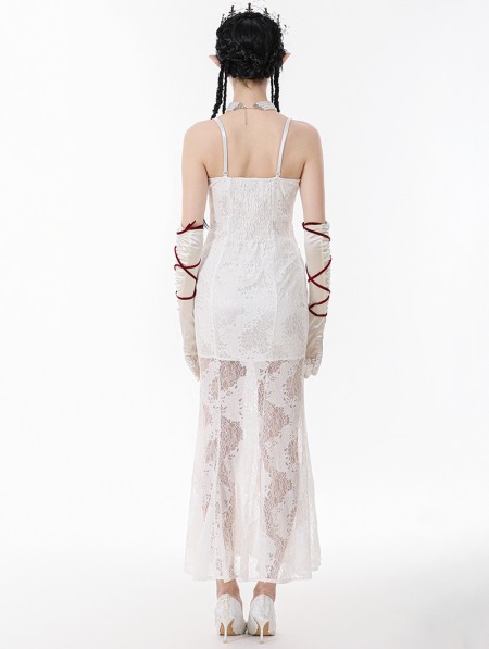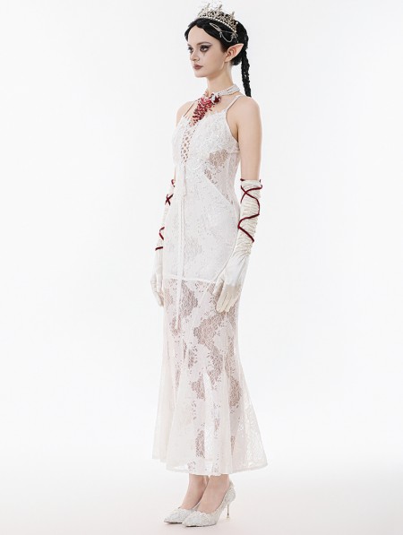 Dark in love White Romantic Gothic Floral Lace Mermaid Maxi Dress
